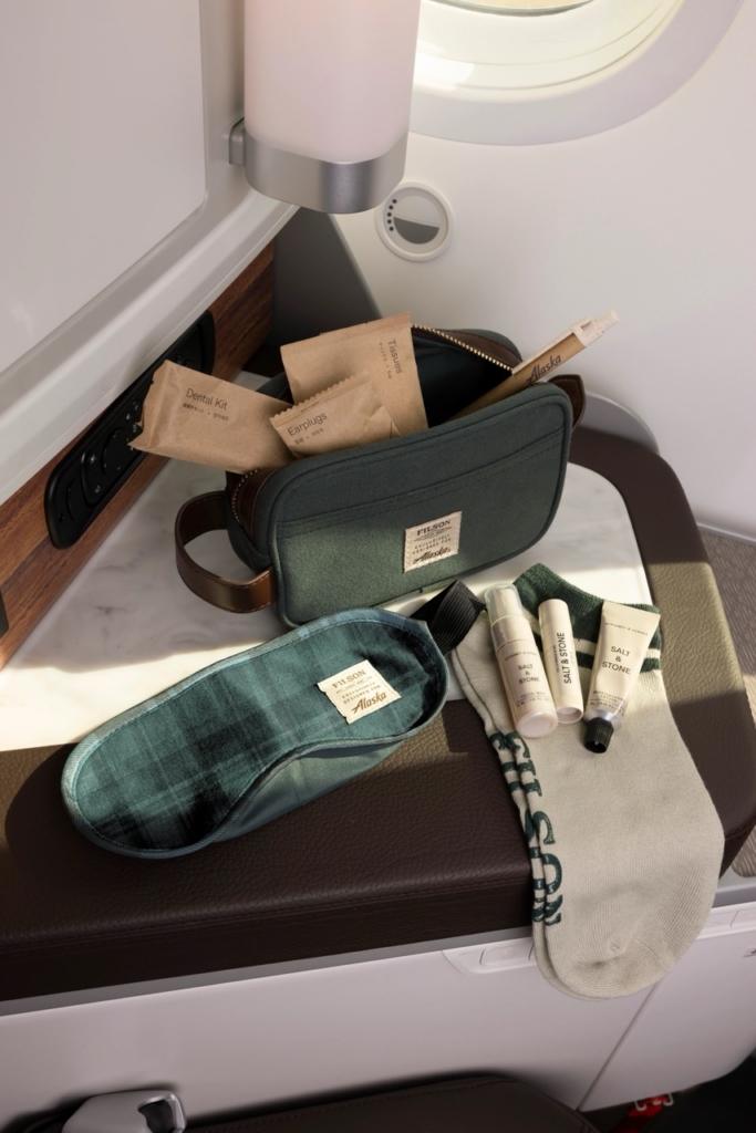 Premium Class passengers receive a Filson amenity kit, with blankets and pillows offered in both Premium Class and Main Cabin.